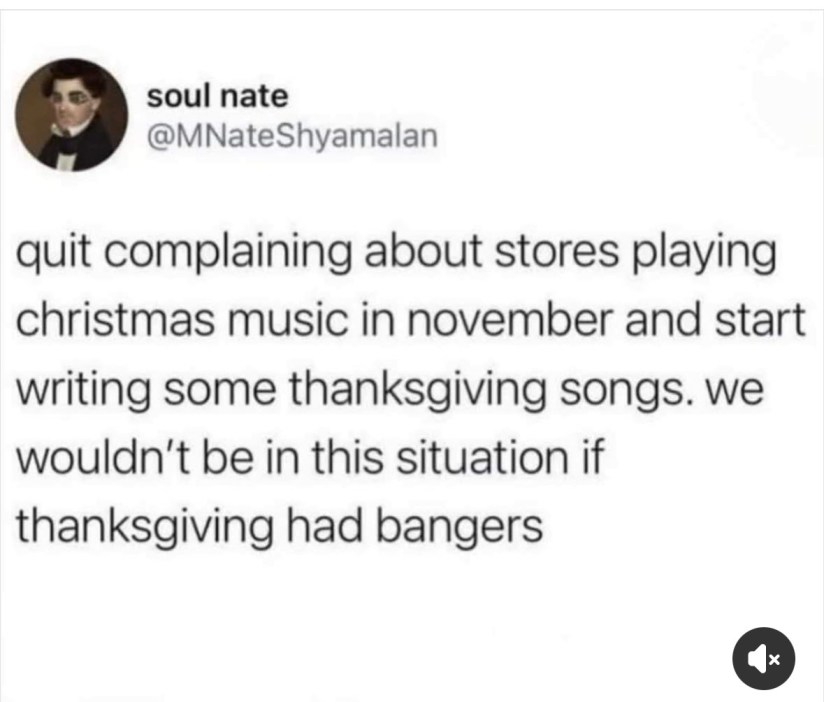 Bonus- a couple Thanksgiving vs. Christmas things I saw online today (yes, I’ve been sort of back on social media/ in and out a bit this week, but still more off than on):