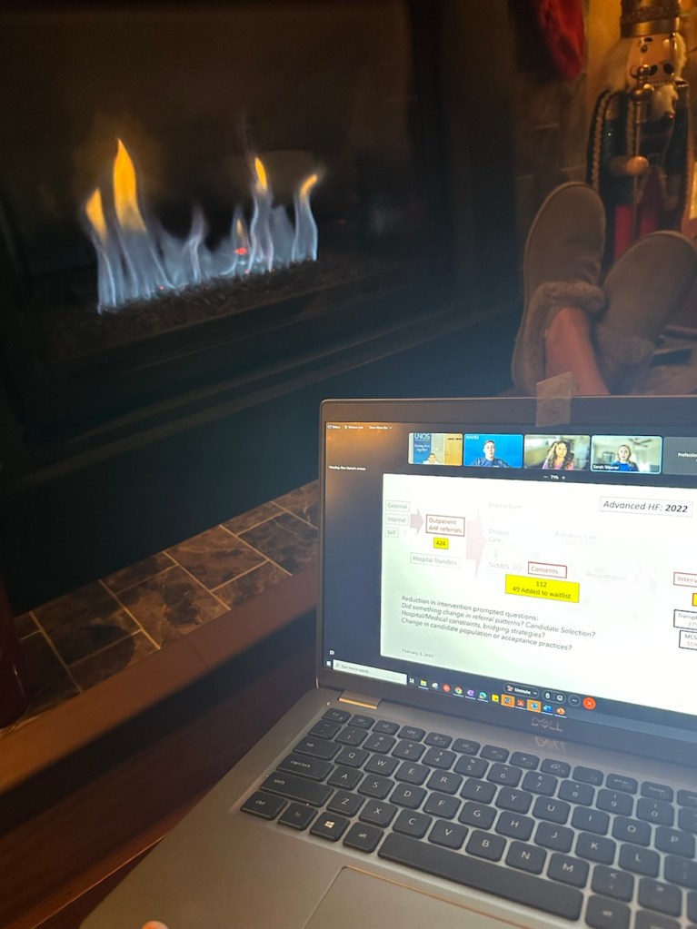A highlight was disconnecting my laptop and sitting down to watch a webinar (off camera for me) by the fireplace!