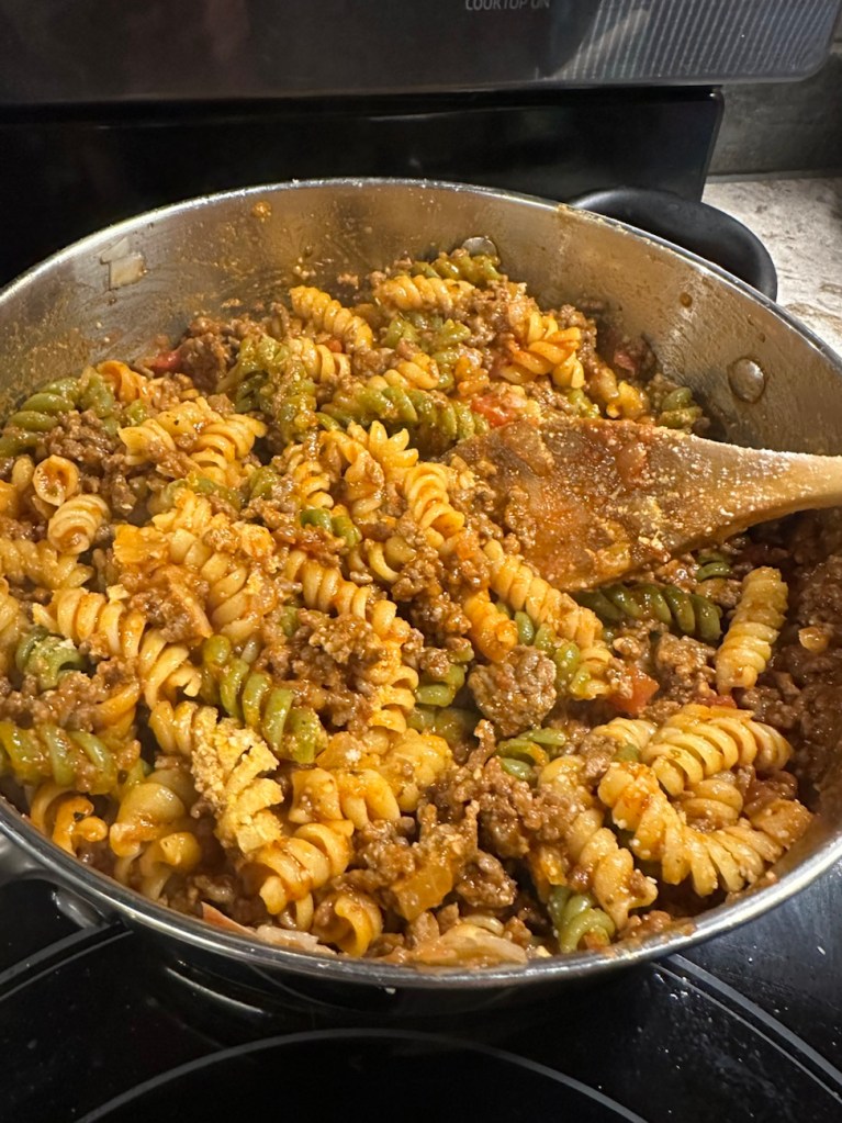 I thought it was pretty tasty? I sautรฉed garlic and onion with the meat, and added a healthy dose of parmesan cheese…