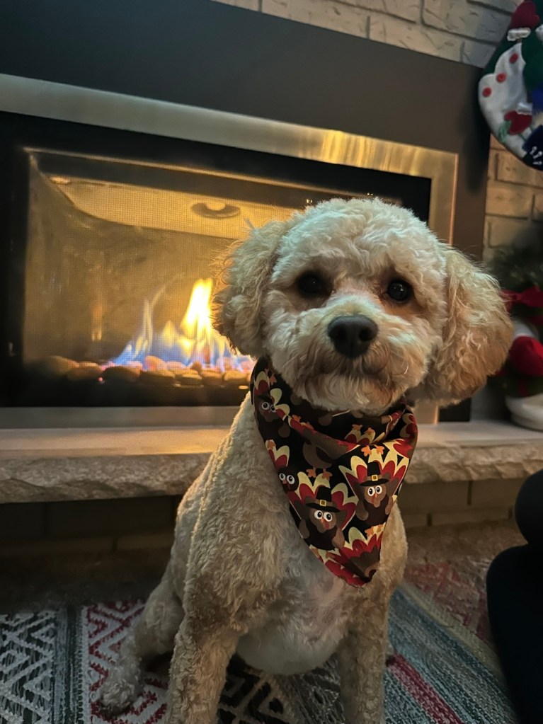Charlie is SO CUTE with his haircut and Thanksgiving bandana!