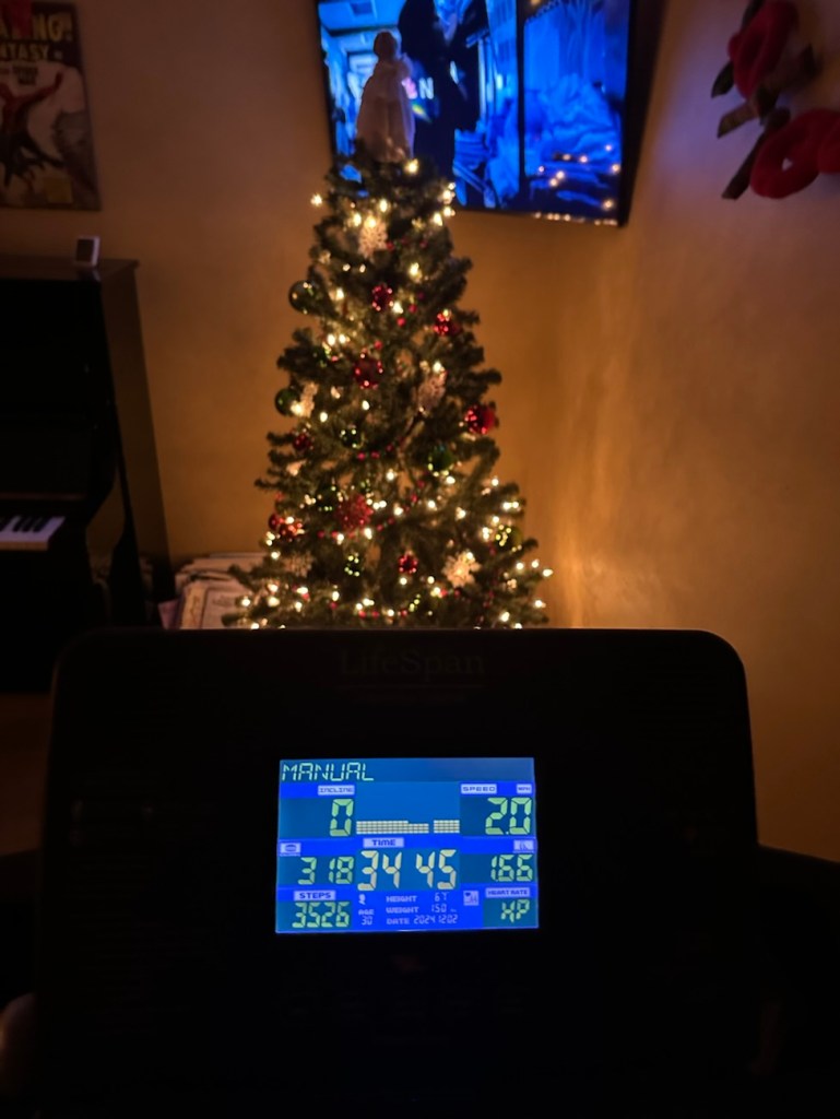 Turns out, I really liked this! I put the Nightly News on and walked by the glow of the Christmas tree. I feel like maybe I should do this more often! Maybe this should just be my cardio for a while! I really feel like the key to sticking with stuff you don’t really like (for me, cardio) is making it as EASY and as ENJOYABLE as possible.