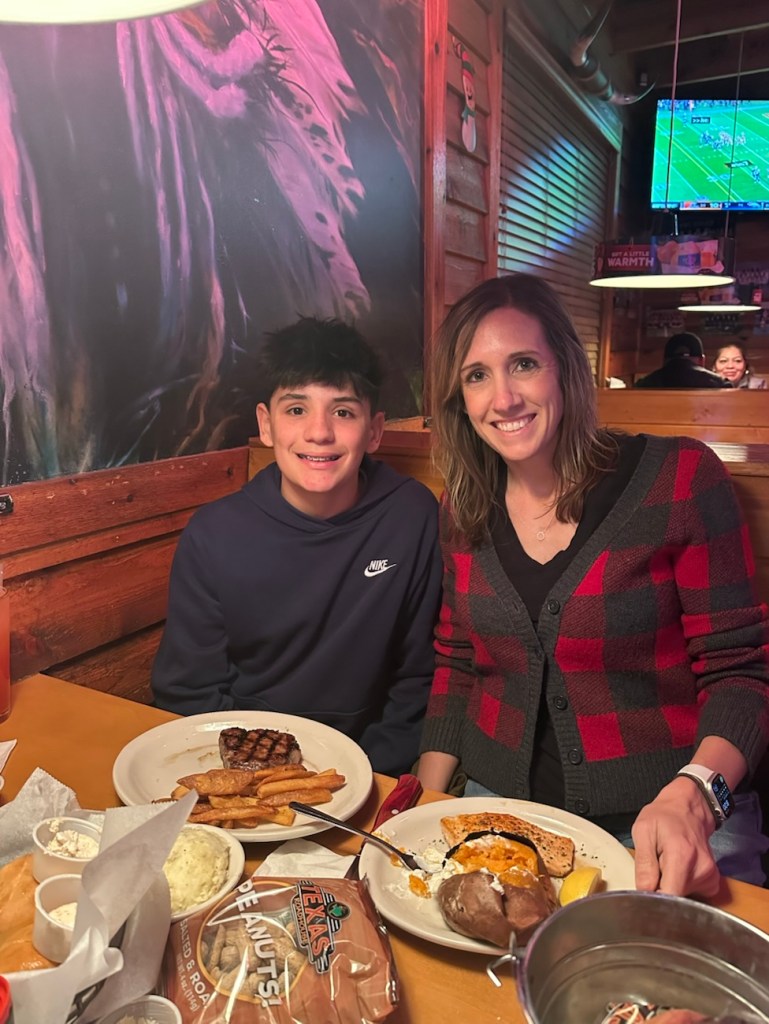 After swim practice and dryland, he requested Texas Roadhouse (AGAIN!) for his birthday dinner. This is now twice in the span of like 2 weeks that we went out for a late dinner, on a weeknight, at Texas Roadhouse!