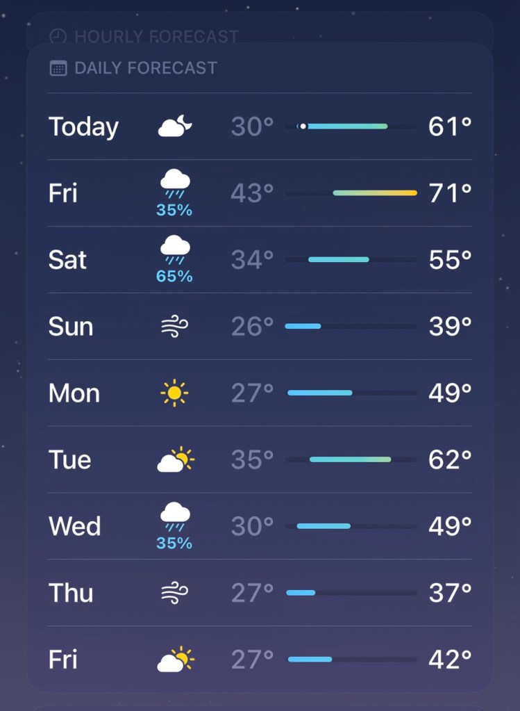 P.S. Check out this week’s weather forecast (screenshot from yesterday). WACKY! It’s all over the place! That’s spring in Wisconsin…