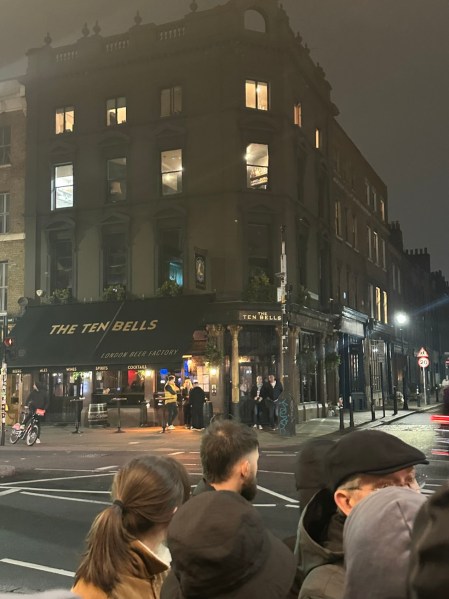 The Ten Bells pub, same pub and spot where victims drank in the 1800s (and maybe even Jack the Ripper himself). Obviously refurbished and new management. 😉