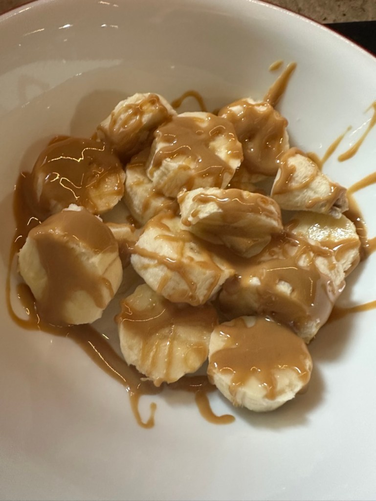 B: early morning- banana + heated almond butter drizzled over it + black tea. Later- bowl of my slow cooker chicken with 1/2 plain grapefruit.