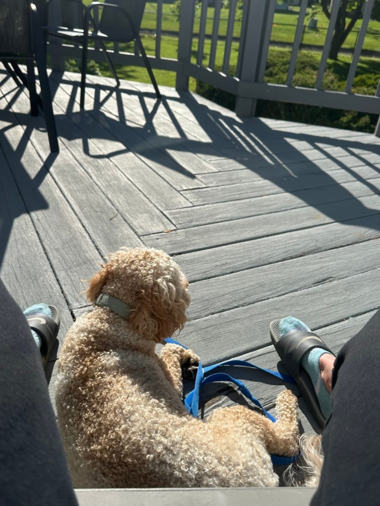 We had tea/ coffee out on the deck with Mr. Charles enjoying the sunshine, too.