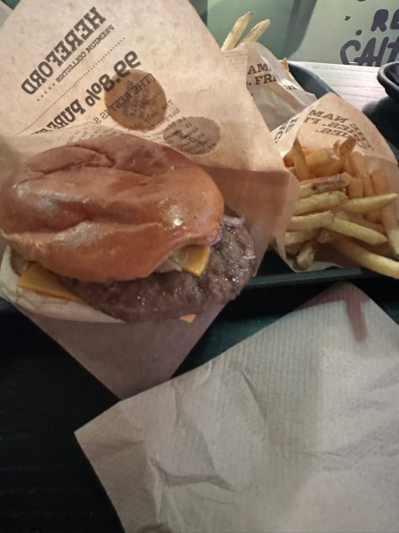 Out for little walk and late dinner (burgers) near apartment: