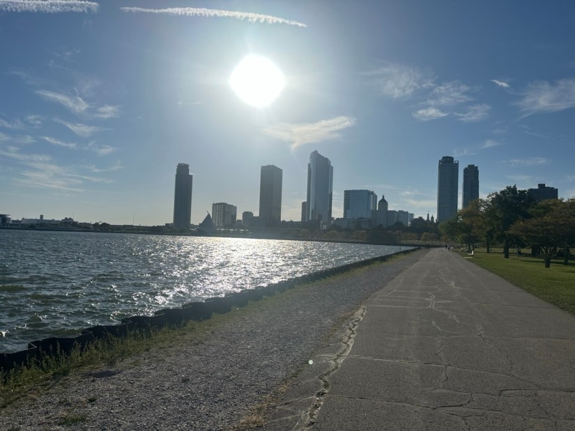 After our walk, we drove ~5 minutes or so and parked by the Milwaukee Riverfront. We were a bit short on time, but just did a short loop along the river so they could look around some. It’s a pretty area!