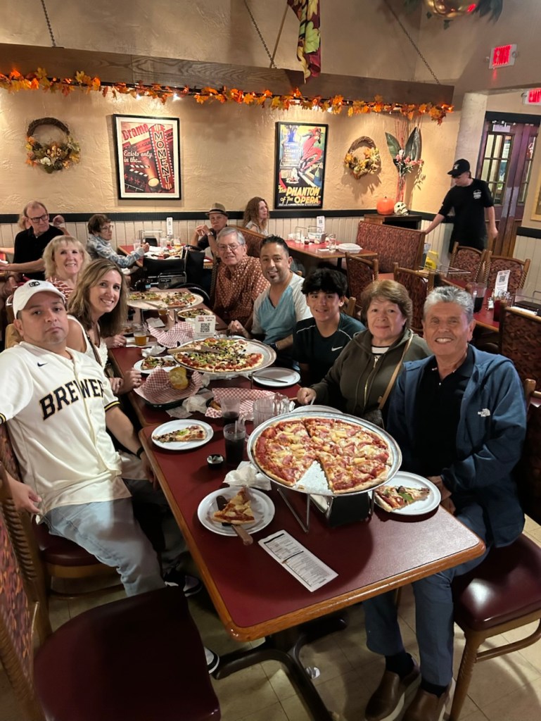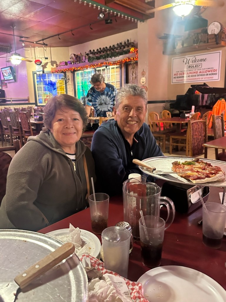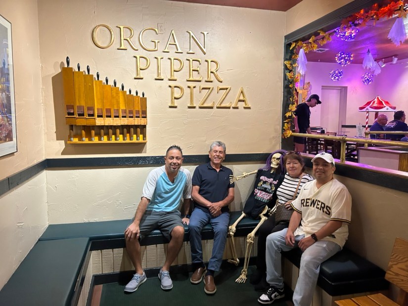 A long time ago on a previous visit we had taken Ivan’s mom to this pizza place called Organ Piper Pizza, which isn’t far from where I grew up. (In fact, we went there fairly regularly when I was a kid. So it’s also a nostalgic place for me.) It’s kind of an “old school” pizza place, like a step back in time. Its claim to fame is the nightly live pipe organ music! Anyway, his dad had seen the pictures and always said he’d like to go there someday when he came. So, Ivan wanted to make that happen.