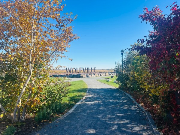 Just outside, I got my pic taken with the Wolfville sign.