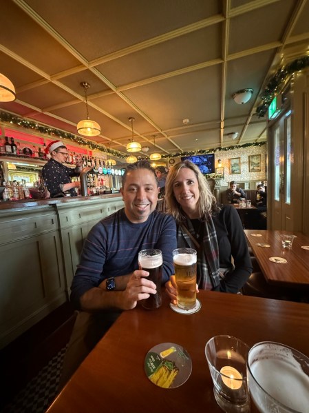 On the way back to the house, Ivan (who was at the wheel, of course) decided to pull off at this pub/ restaurant not far from my sister’s house. My sister had previously told us it was a “good luck tradition” to stop for a pint on Christmas Eve, and Ivan took this very much to heart! Who can pass up the guarantee of Irish good luck for 2026? 😉 haha.