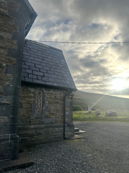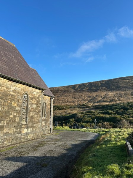 Christmas Eve morning was mostly just a little flurry of final preparations for some people and hanging out for others. 🙂 The main event on the schedule was church at noon. For various reasons, my sister decided we’d go to church out in Achill, a little teeny tiny coastal town, instead of their regular church, which had a later service.