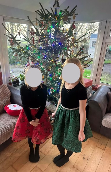 The girls all pretty for Christmas Eve. 🙂