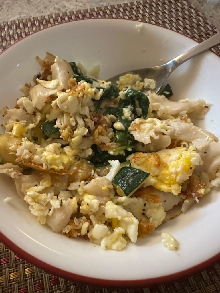 - small handful of spinach or other cooked veg (zucchini, yesterday)