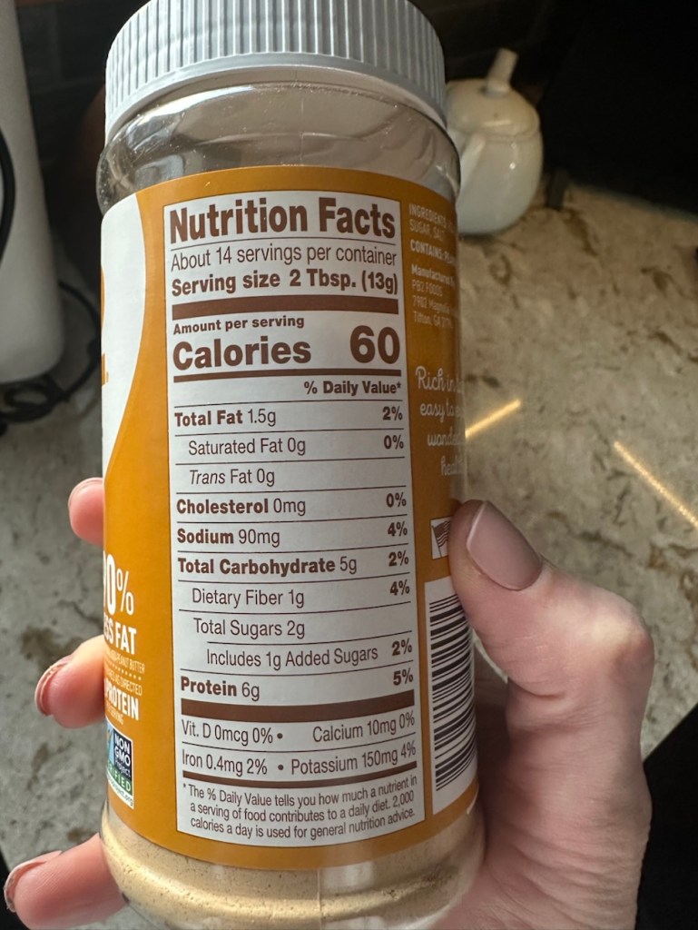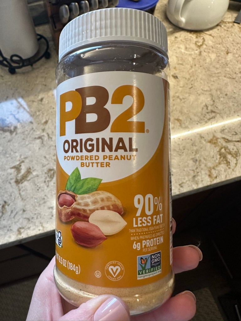 Speaking of PB2, I recently unearthed a container of it when I cleaned out the pantry. I forgot I had bought it a while back!! I used to use this back in the day when I was doing macro tracking- it’s a great way to get that peanut butter taste without ALL the fat and calories from peanut butter. (disclaimer- I’ve never tried adding water to “make” peanut butter- I’ve only ever stirred the powder into oatmeal or yogurt or smoothies, etc.).