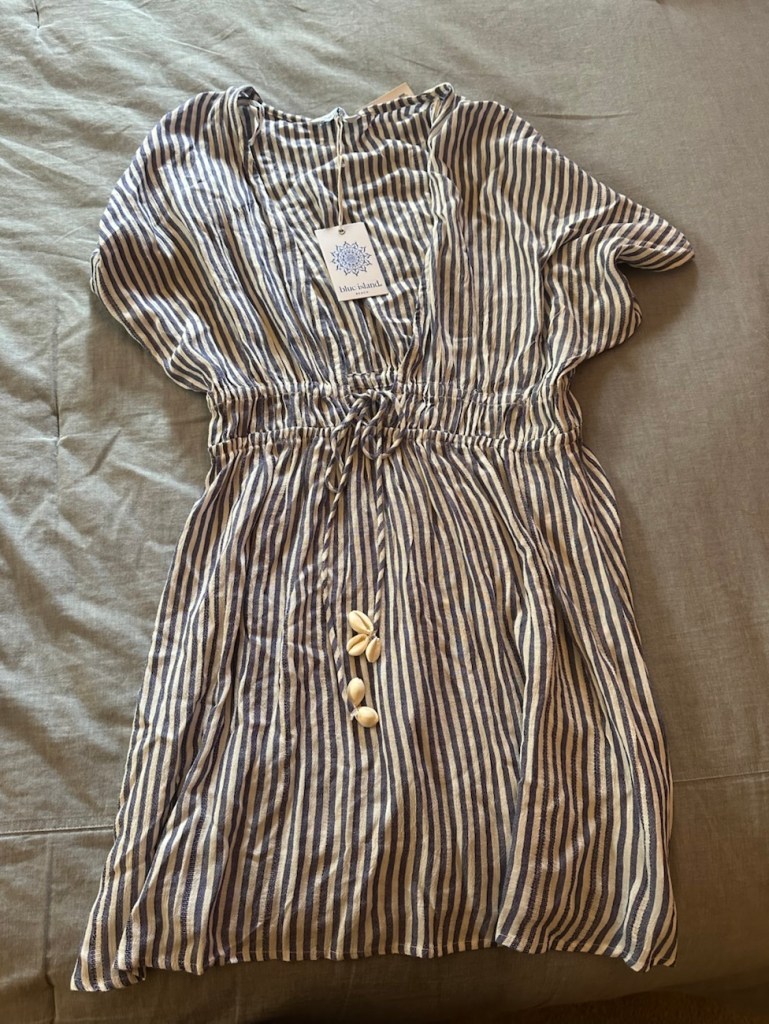 Oh, I forgot to share the other day- I also snagged this new beach cover-up at TJ Maxx last week, which I’m excited about. My current beach coverups (2) are both really old and I’m just very bored of them, basically. It was strangely difficult to find anything besides the big white or black button-down shirt coverup style, which I didn’t really want. (In part because my mom tends to wear that style, I think, and while it might be cute, I don’t really need to be all matchy matchy with my mom at 42! 😅)