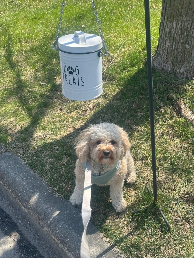At the treat house. At first I said, “No snacks!” and then he jumped up and pawed at the pail, lol! 🤣