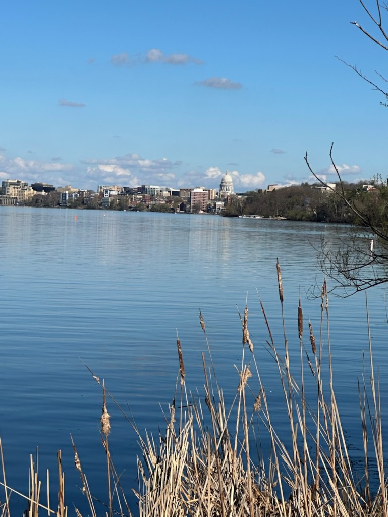 So I had some time to kill! I decided to take a stroll along the lakeshore path, one of the many great spots on the UW-Madison campus. In my dress and leopoard print flats. 😅