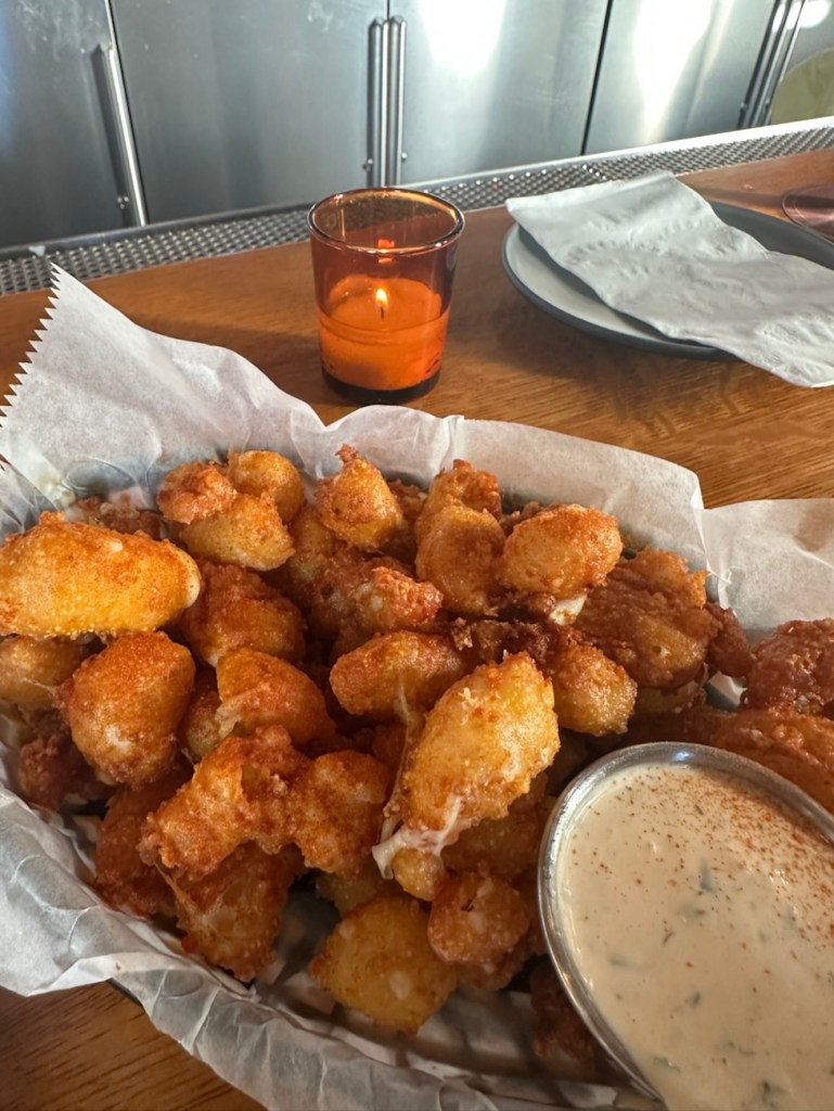 The plan was just a quick drink, but we ended up ordering some cheese curds, too, because… well. 😆